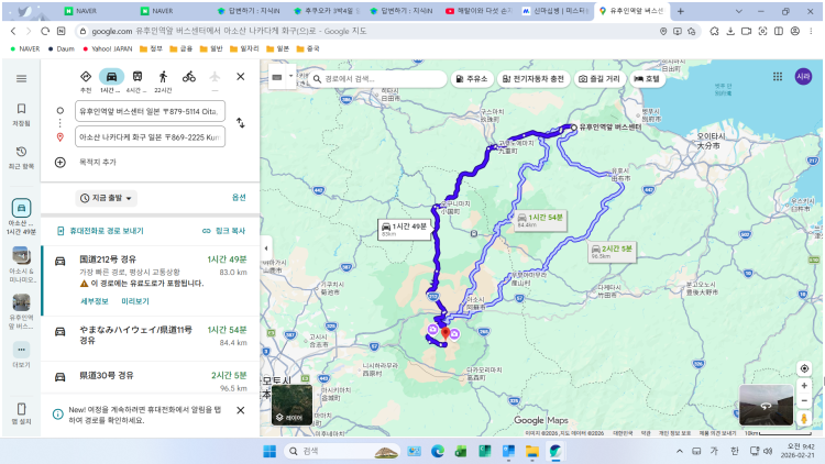 아소산에서 구로카와 온천 까지는 약 47km 정도 라서 편할겁니다.