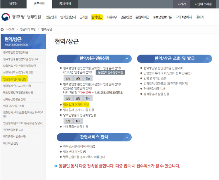 군대 연기 (24세 이하) 안녕하세요 이번에 입영통지서가 나와서 입영일자가 정해졌습니다. 원래는 근무중이던 곳이 있어서