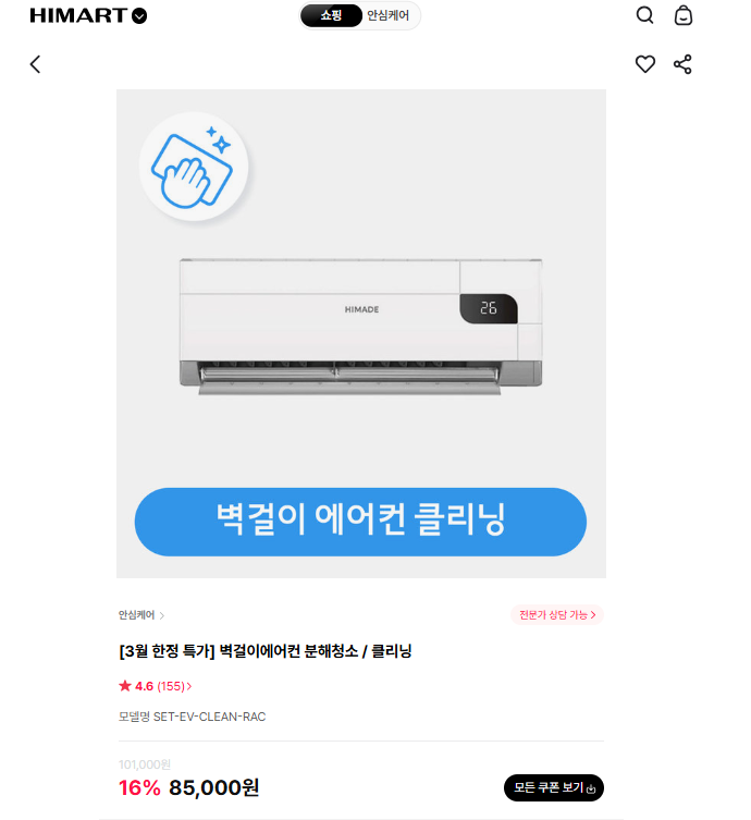 하이마트에서도 벽걸이 에어컨 클리닝을 진행하니 참고바랍니다.