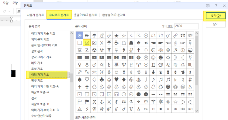 한글 네모박스에다 체크 표시하는법 없음?? 이거 체크하고 싶은데 못하겠엉ㅠ
