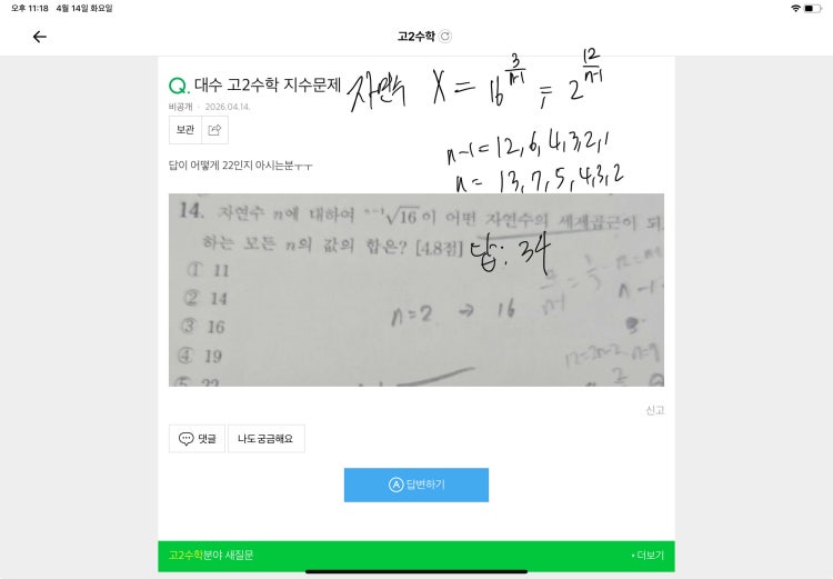 대수 고2수학 지수문제 답이 어떻게 22인지 아시는분ㅜㅜ