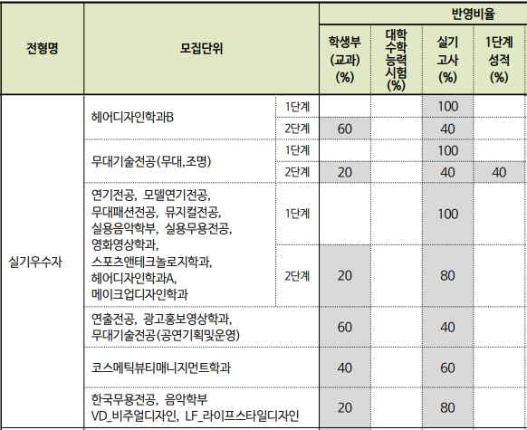 어떤 학과인지 모르겠지만 실기 비중은 전공에 따라 많이 다릅니다.