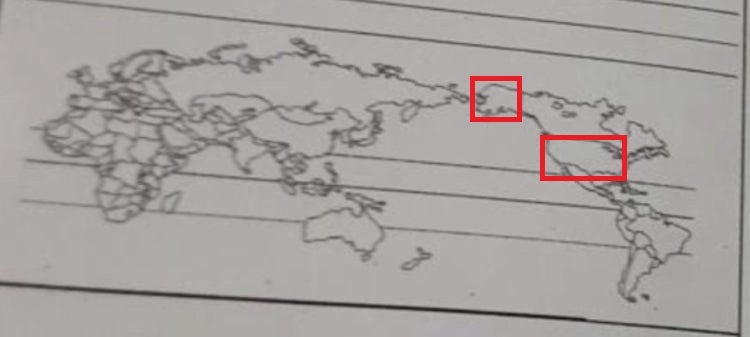 이 지도에서 미국이 어딘지 알려주세요ㅠ 말로 설명하면 못알아들어서 직접 저 사진에 미국위치 점 찍어주세요..