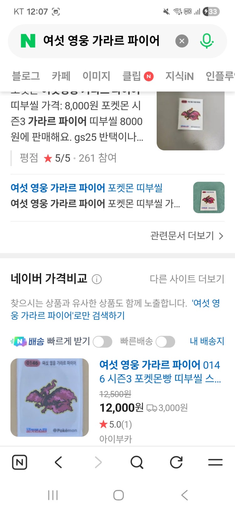 포켓몬 띠부씰 한창 유행할때 가지고 있던것.. 지금은 의미없는거알지만 셋중에 젤조은게 뭔가요?