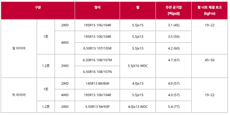4륜봉고3 순정휠이랑 4륜포터2 순정휠 호환가능한가요? 부탁드립니다