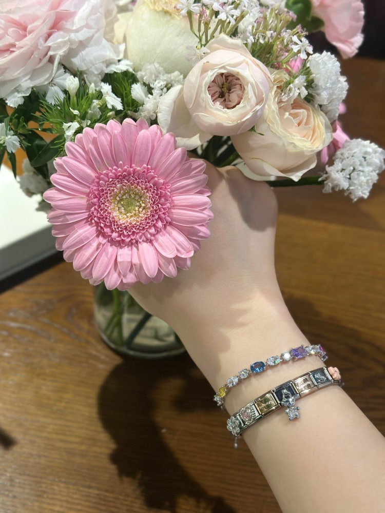 테니스팔찌, 다른 액세서리와 레이어드 괜찮을까요? 이번에 새로 산 테니스팔찌가 너무 마음에 들어서 그런데, 다른 팔찌나