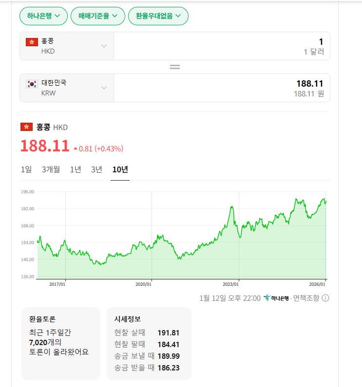 지금 어떤가요?여행가려고 하는데지금 홍콩 환율 괜찮은건가요?