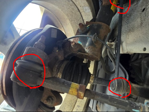 아래 사진에 표시된 부분을 손으로 흔들어 보세요 보통 저쪽에서 많이 나더라고요 부식이 심해서 다른 곳일 수도 있을 거 같지만 저 부분들이 그나마 저렴합니다.