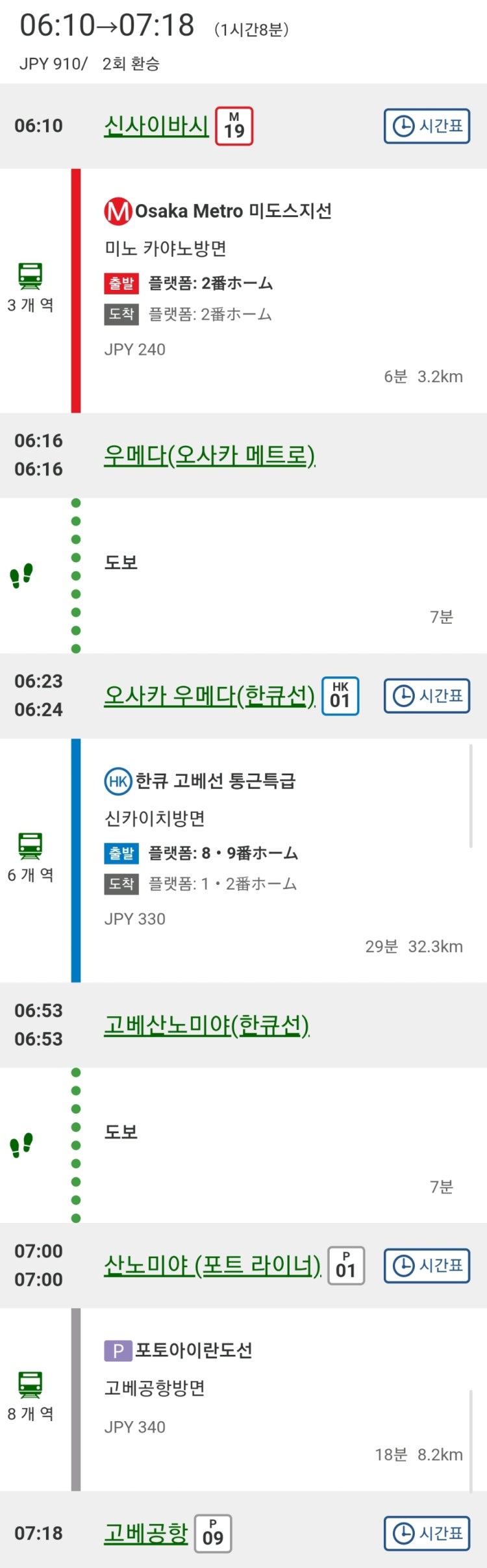 신사이바시에서 고베공항 오전 6시에 난바나 신사이바시에서 고베 공항으로 환승 한 번에 갈
