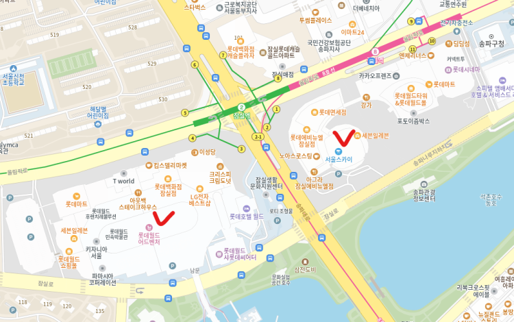 롯데월드 놀이공원이 길 건너 있는겁니다.