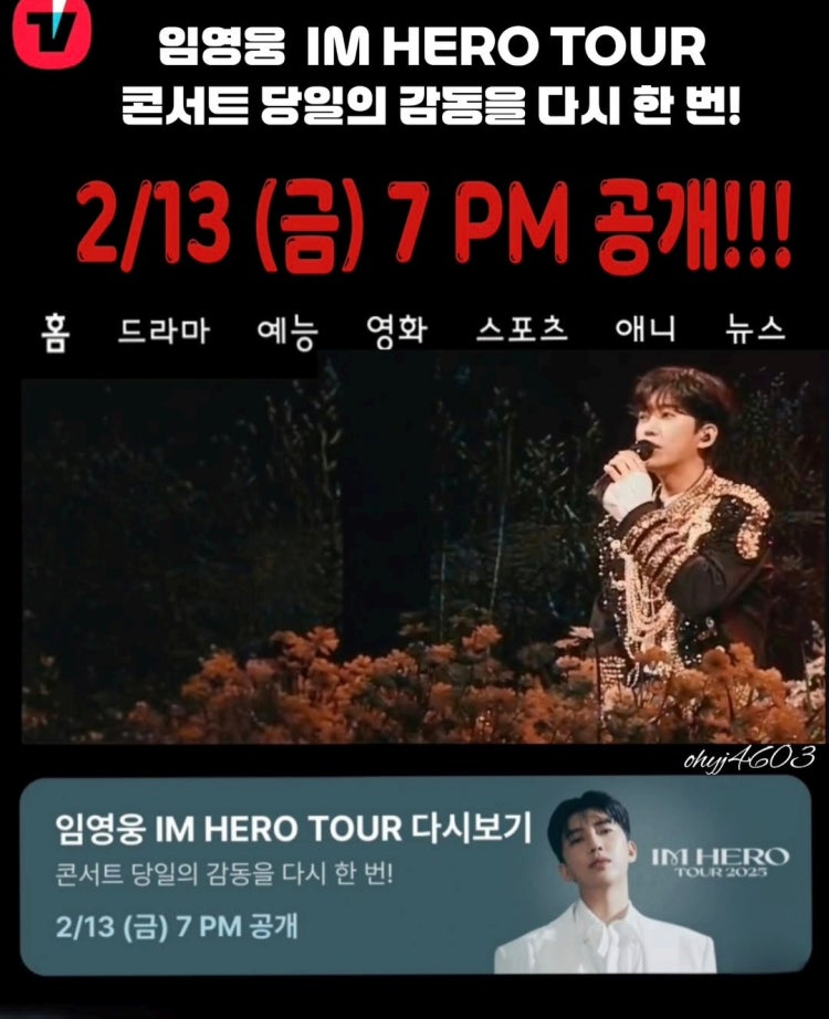 임영웅 티빙에서 생중계 했던 서울콘서트요? 임영웅 26년 1월18일에 서울콘서트 티빙에서 생중계 했었는데 다시 보기는 없는건가요?