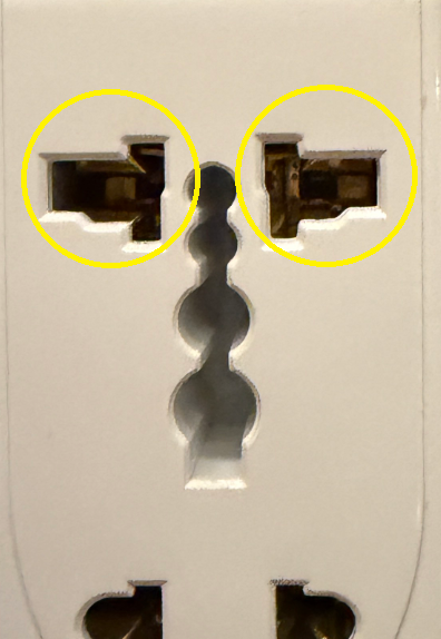 노란색쪽에 꽂으면 됩니다. 홍콩 처럼 가운데 길죽한 애는 가운데 꽂히게 하고