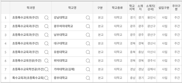 초등특수교육 전공이 있는 교육대학원은 아래와 같습니다.